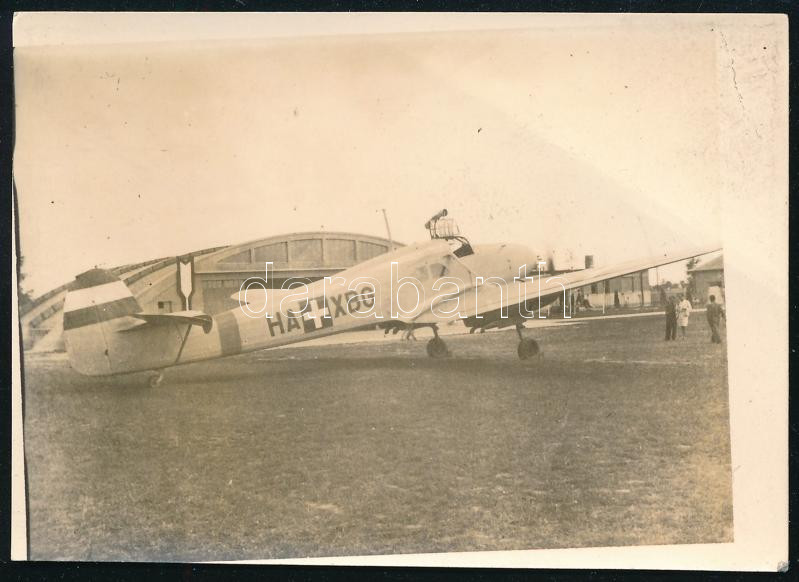 Description: cca 1940 Vitéz Háry László (1890-1953) repülő vezérőrnagy, az önálló magyar légierő első parancsnokának HA-XBG FW-58 Weihe (magán?) repülőgépe, vintage fotó, jelzés nélkül, 6x7,5 cm