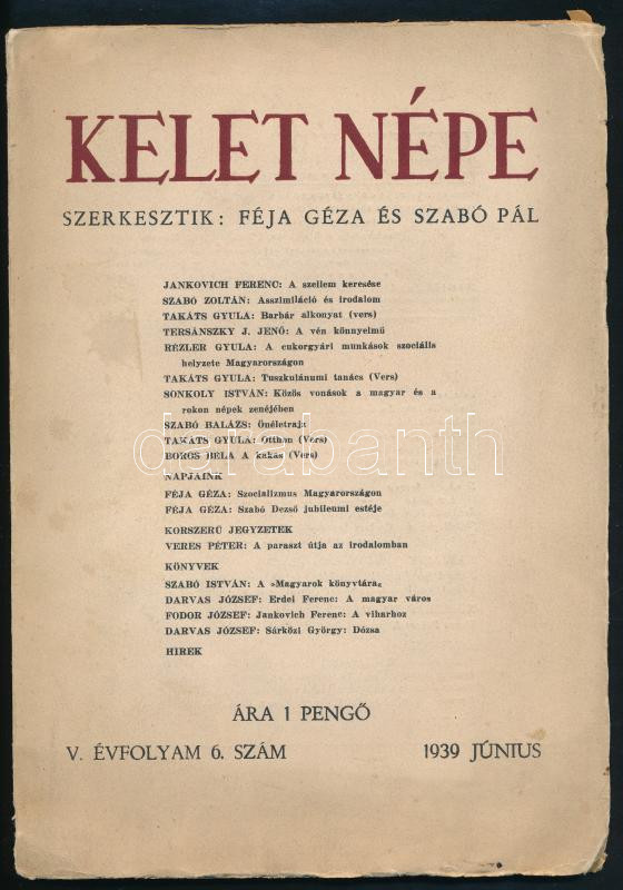 https://www.darabanth.com/en/436-Online-auction/436.0/Art-and-other-collectibles/Printed-Materials~1000003/1939-Kelet-nepe-c-folyoirat-V-evf-6-sz-1939-junius-szerk-Feja-Geza-es-Szabo-Pal-S~II2833687