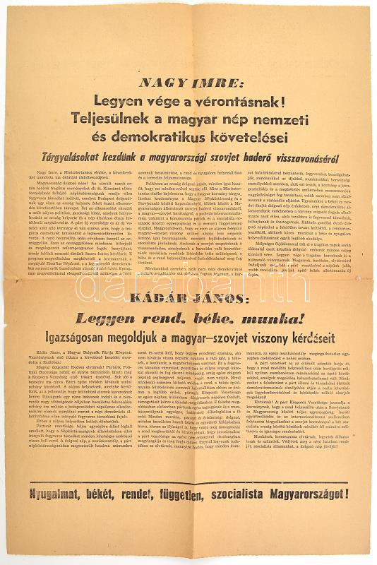 1956 Nagy Imre: Legyen vége a vérontásnak c. kiáltványa a forradalom napjaiból. Hajtásnál kis szakadások 33x46 cm