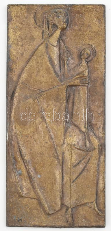 Erwin Huber (1929-2006): II. János Pál pápa emlék relief, Ausztria, 1988. Réz, jelzett, 16,5x7 cm