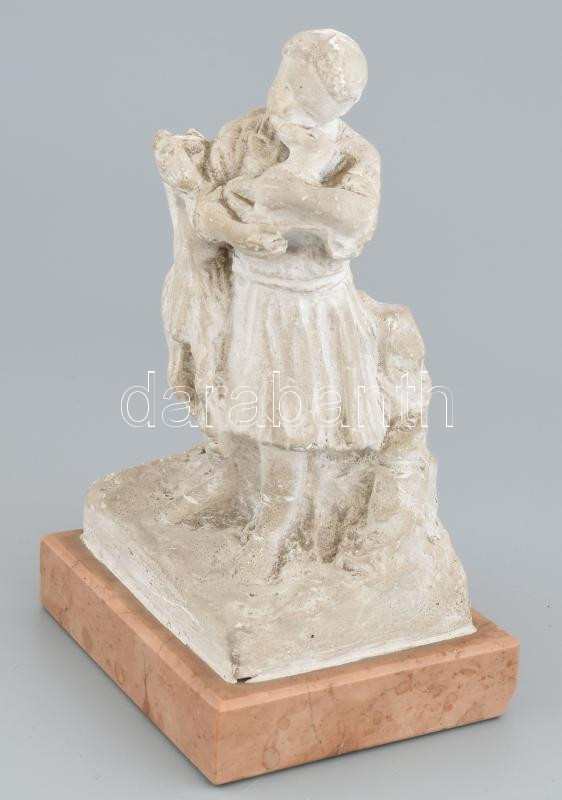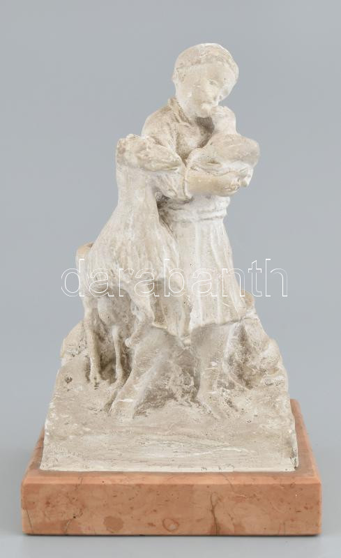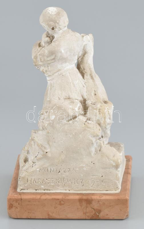 Haraszkiewicz jelzéssel: Lány bárányokkal, szoborterv. Gipsz, márvány talapzaton. Hátul jelzett: "Mintázta Haraszkiewicz, 1925", m: 21 cm