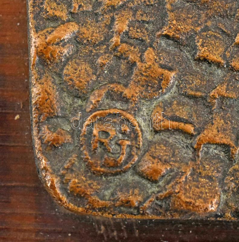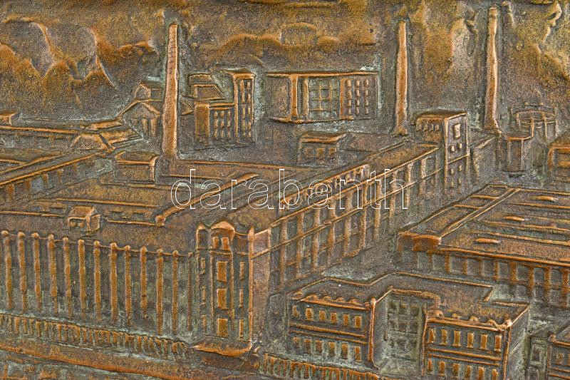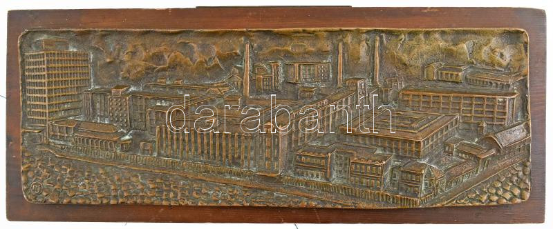 R J Jelzéssel: Tungsram gyár plakett. Bronz, fára applikálva. 11x32 cm