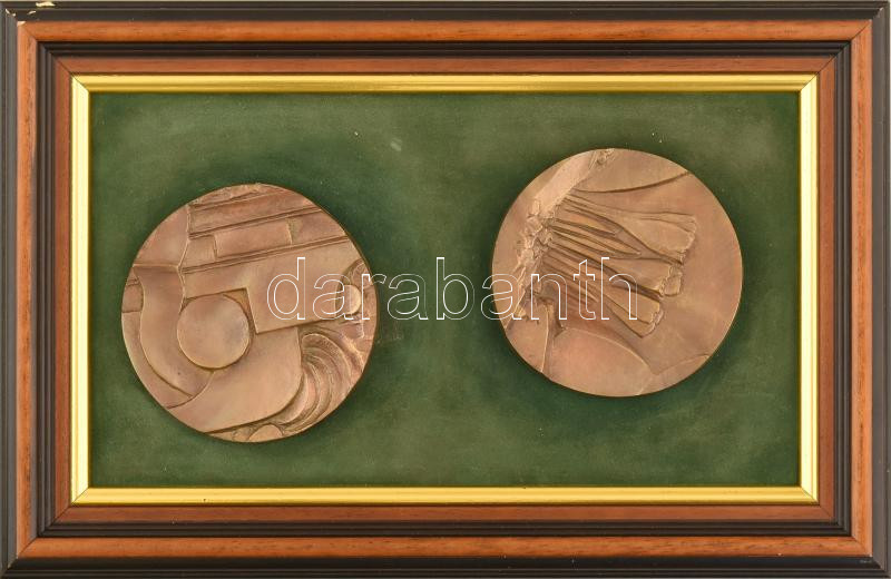 Soltra Elemér (1922-2013): 2 db bronz plakett. Jelzett, Keretben, d: 9...