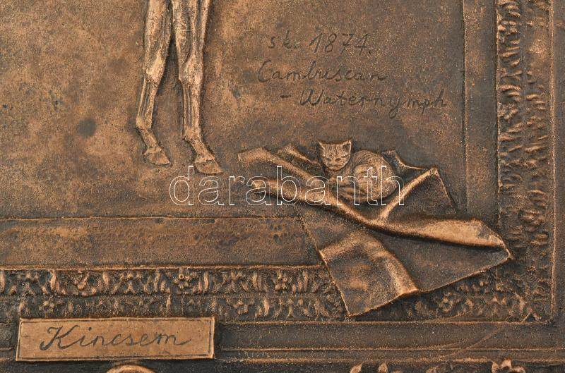 Tóth Béla (1941-2022) Munkácsy Mihály-díjas szobrászművész és éremművész, ,,a lovak szobrásza": Kincsem a verhetetlen 1979. Bronz falikép, jelzett, 35x40 cm Kincsem többszörös díjnyertes, Magyarországon tenyésztett, angol telivér szülőktől származó versenyló, a magyar lósport és lótenyésztés büszkesége. Magyarországon ,,a legyőzhetetlen csodakanca" névvel, Európa többi részén pedig a ,,Hungarian miracle" és a ,,Hungarian wonder" ,,Wunderstute" (vagyis magyar csoda) titulusokkal illették. ,,Kincsem volt az, aki fellelkesítette a magyar urakat, hogy a csodakancához hasonló paripákat tenyésszenek, amelyekkel majd öregbítsék a magyar lónevelés hírnevét, végig az egész világon. A Majthényi Izidorok, a Baltazziak, Zichy Béla grófok, Dréher Antalok, Springer Gusztávok, Teleki László grófok, Apponyi Antalok, Geist Gáspárok, Luczenbacher Miklósok, a Rothschildok, a Sigrayak, Wenckheimek, Esterházyak, Harkányiak, Rohonczyak, Szemerék voltaképpen azért neveltek csikókat az utolsó ötven esztendőben, hogy utolérjék ama legendás Blaskovich Ernőt. " Krúdy Gyula