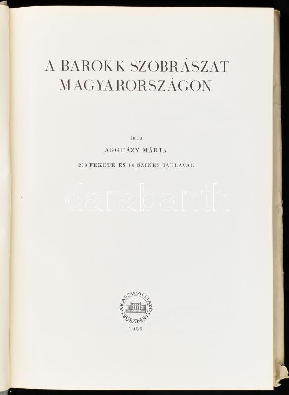 Aggházy Mária: A barokk szobrászat Magyarországon. Bp., 1959, Akadémia... https://www.darabanth.com/en/436-Online-auction/436.0/Books/Books-Architecture-Art~1000011/Agghazy-Maria-A-barokk-szobraszat-Magyarorszagon-Bp-1959-Akademiai-Kiado-29-pplusCCXXXVIII~II2834288