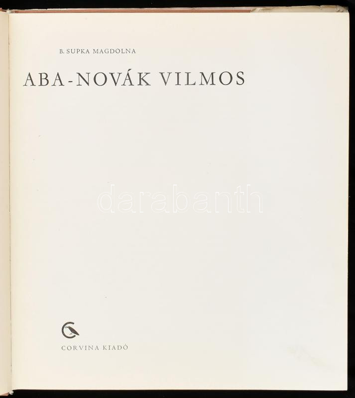 B. Supka Magdolna: Aba-Novák Vilmos. Bp., 1966, Corvina. Első kiadás. Fekete-fehér és színes reprodukciókkal illusztrálva. Kiadói egészvászon-kötés, sérült kiadói papír védőborítóban. Megjelent 5440 példányban. + Aba-Novák emlékkiállítás. (Kiállítási katalógus). B. Supka Magdolna tanulmányával. Szolnok, 1962, Magyar Nemzeti Galéria. Kiadói papírkötés, kissé sérült. + Kiállítási meghívó