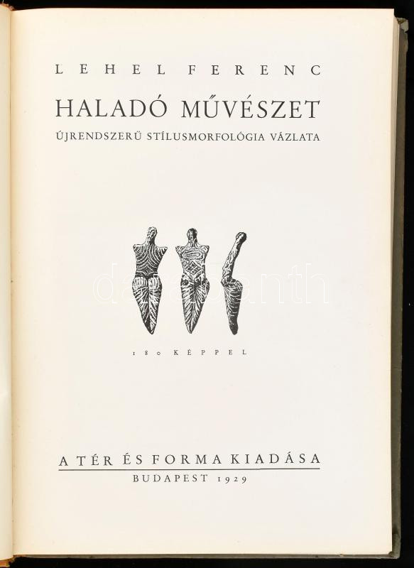 Lehel Ferenc: Haladó művészet. Újrendszerű stílusmorfológia vázlata. Bp., 1929, Tér és Forma. Fekete-fehér képekkel illusztrálva. Kiadói félvászon-kötés, kissé kopottas, sérült gerinccel.