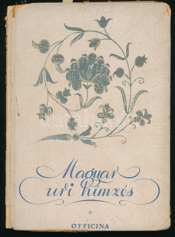 Tápay-Szabó Gabriella: Magyar úri hímzés. Officina Képeskönyvek. 36. Bp., 1941, Officina,31+1 p.+28 (fekete-fehér képtáblák) t. Első kiadás. Kiadói kartonált papírkötés, kopott borítóval, hiányzó gerinccel.