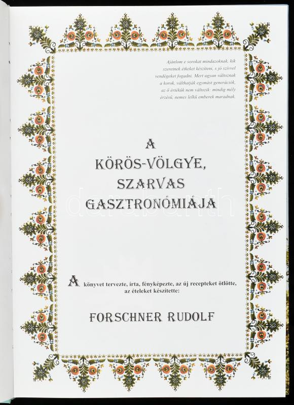 Forschner Rudolf: A Körös-Völgye, Szarvas Gasztronómiája. Bp., 2005, Planétás. Számozott (1018. példány)! Kiadói kartonált papírkötésben.