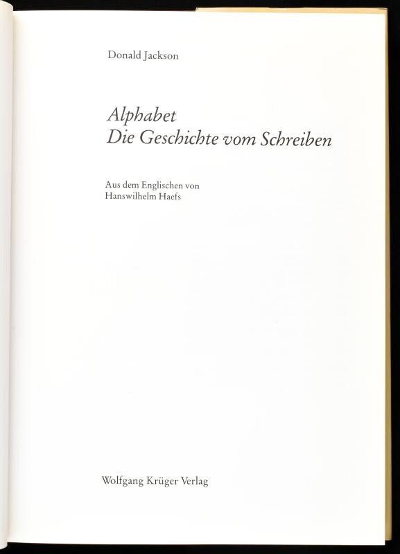 Donald Jackson: Alphabet. Die Geschichte vom Schreiben. Frankfurt am M... https://www.darabanth.com/en/436-Online-auction/436.0/Books/Books-History~1000009/Donald-Jackson-Alphabet-Die-Geschichte-vom-Schreiben-Frankfurt-am-Main-1981-Wolfgang-Kruger-Ve~II2761650