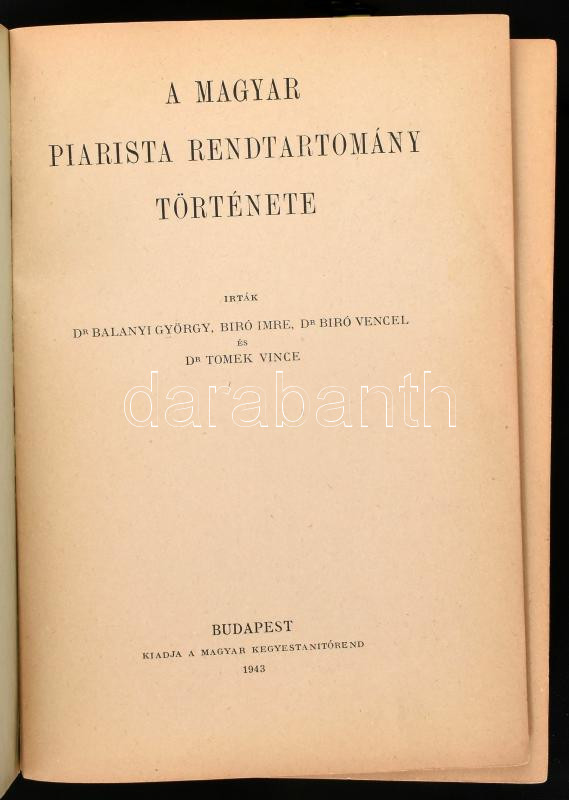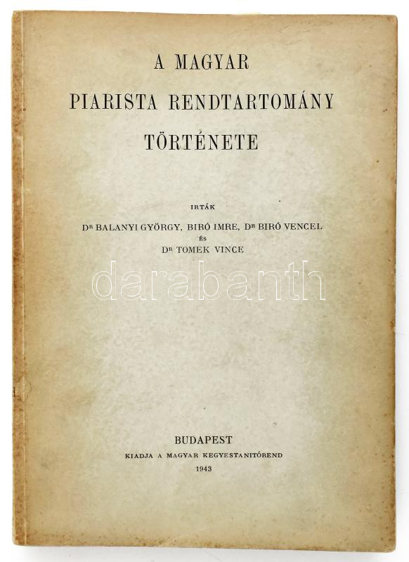Dr. Balanyi György-Bíró Imre-Dr. Bíró Vencel-Dr. Tomek Vince: A magyar... https://www.darabanth.com/en/436-Online-auction/436.0/Books/Books-History~1000009/Dr-Balanyi-Gyorgy-Biro-Imre-Dr-Biro-Vencel-Dr-Tomek-Vince-A-magyar-piarista-rendtartomany-~II2829681