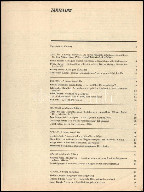 Glatz Ferenc (szerk.): Az 1944. év históriája. História könyvek. Bp., ...