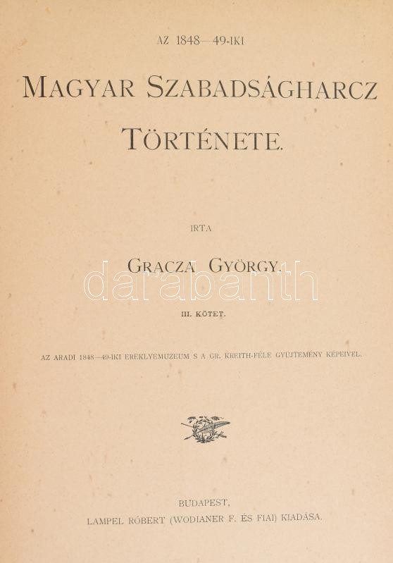 Gracza György: Az 1848-49-iki magyar szabadságharc története. I-V. köt... https://www.darabanth.com/en/436-Online-auction/436.0/Books/Books-History~1000009/Gracza-Gyorgy-Az-1848-49-iki-magyar-szabadsagharc-tortenete-I-V-kot-Bp-1894-1898-Lampe~II2833164