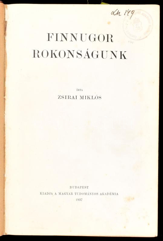 Zsirai Miklós: Finnugor rokonságunk. Bp., 1937, MTA, 587 p.+ 2 t. Átkö... https://www.darabanth.com/en/436-Online-auction/436.0/Books/Books-History~1000009/Zsirai-Miklos-Finnugor-rokonsagunk-Bp-1937-MTA-587-pplus-2-t-Atkotott-felvaszon-kotes-~II2835431
