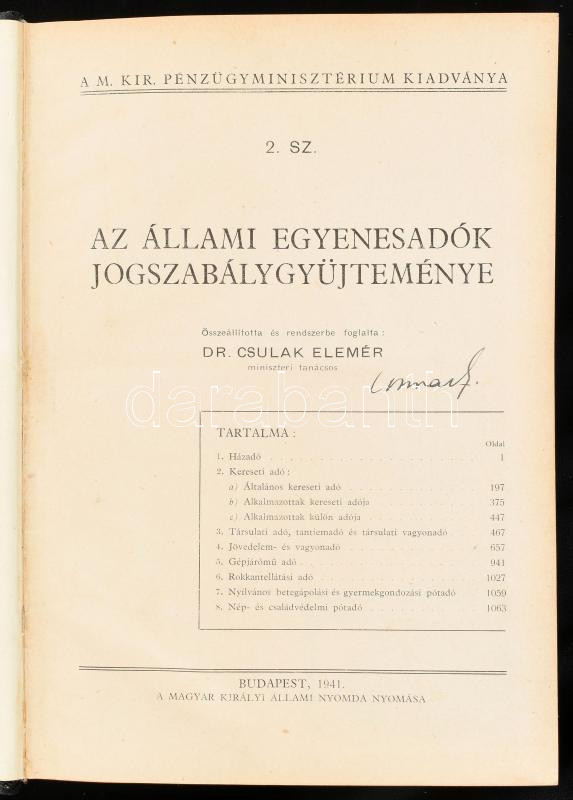 Dr. Csulak Elemér: Az állami egyenesadók jogszabálygyűjteménye. A. M. ... https://www.darabanth.com/en/436-Online-auction/436.0/Books/Books-Law~1000007/Dr-Csulak-Elemer-Az-allami-egyenesadok-jogszabalygyujtemenye-A-M-Kir-Penzugyminiszter~II2829894