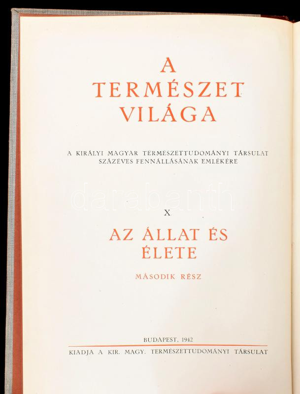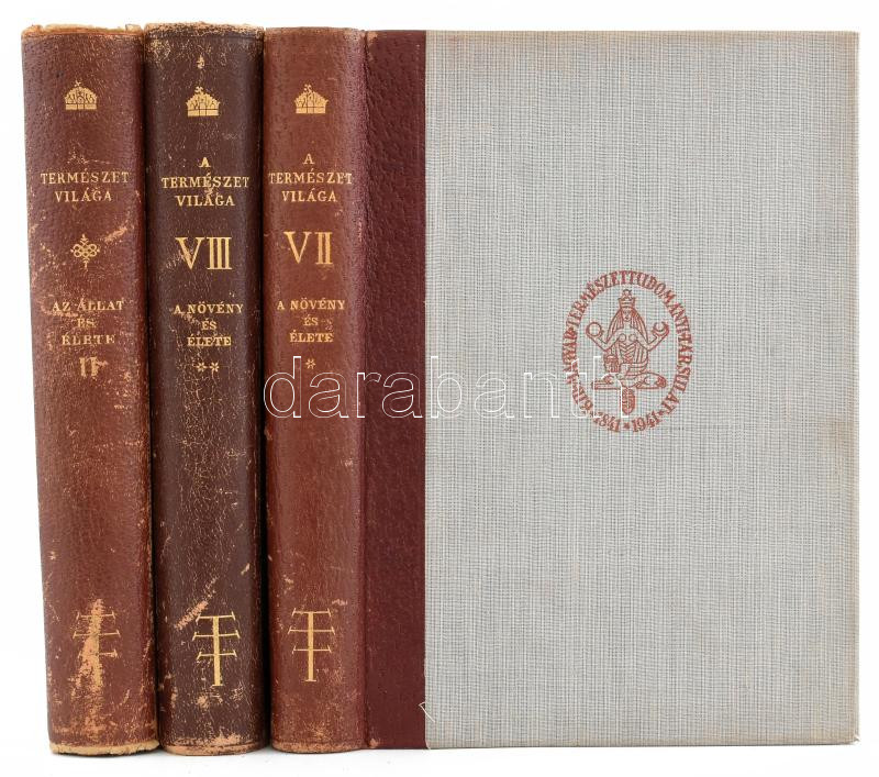A Természet Világa. I:, VIII, VIII. köt.: Az állat és ember, A növény és élete, 1938-1939, Kir. Magy. Természettudományi Társulat. Számos szövegközi és egészoldalas illusztrációval. Kiadói aranyozott gerincű félbőr-kötés, kopott