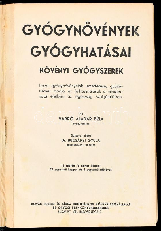 Varró Aladár Béla: Gyógynövények gyógyhatásai. Kiadói félvászon kötés,...