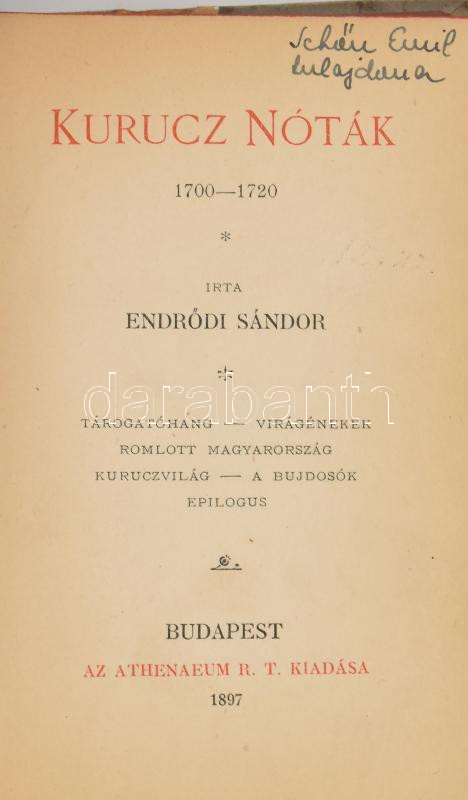 https://www.darabanth.com/en/436-Online-auction/436.0/Books/Books-Other-rarities~1000023/Endrodi-Sandor-Kurucz-notak-1700-1720-Bp-1897-Athenaeum-VIIIplus293-p-Elso-kiadas-Korabel~II2836427