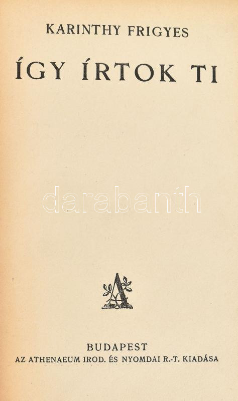 Karinthy Frigyes munkái I-X. köt. I. köt.: Így írtok ti.; II. köt.: Capillária.; III. köt.: Tanúr úr kérem.; IV. köt.: Gyilkosok.; V. köt.: Krisztus vagy Barabás.; VI. köt.: Harun al Rasid.; VII. köt.: Új görbe tükör.; VIII. köt.: Színház.; IX. köt.: Esik a hó.; X. köt.: Két hajó. Bp.,én.,Athenaeum - Dick Manó. A sorozat 12 kötetben teljes. Kiadói kopott félvászon-kötések.