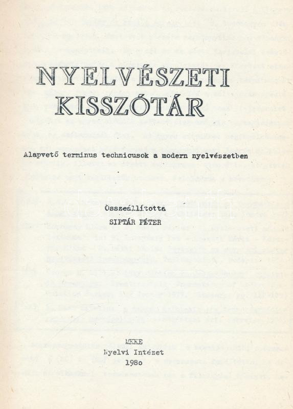 Nyelvészeti kisszótár. Alapvető terminus technicusok a modern nyelvész... https://www.darabanth.com/en/436-Online-auction/436.0/Books/Books-Other-rarities~1000023/Nyelveszeti-kisszotar-Alapveto-terminus-technicusok-a-modern-nyelveszetben-Osszeall-SiptC3~II2826346