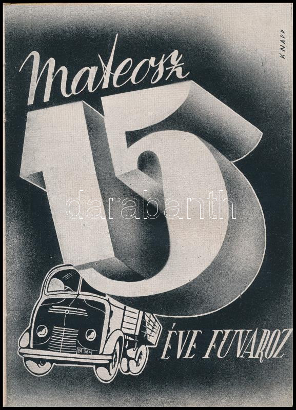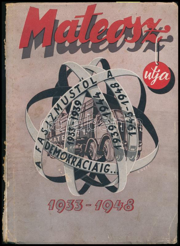 Erdős Andor: MATEOSZ útja a fasizmustól a demokráciáig. 1933-1939, 1939-1944, 1945-1948. Bp., 1948., Hungária-ny., 137 p. A címlapot és a rajzokat Knapp Károly tervezte. Gazdag fekete-fehér képanyaggal illusztrált. Kiadói papírkötés, a hátsó borító és a gerinc hiányzik, de a könyv teljes. (Magyar Teherfuvarozók Országos Szövetsége =MATEOSZ.)