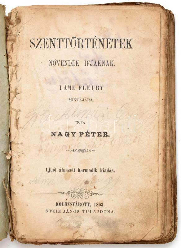 Nagy Péter: Szenttörénetek növendék ifjaknak. Kolozsvár, 1863. Stein J... https://www.darabanth.com/en/436-Online-auction/436.0/Books/Books-Religion~1000019/Nagy-Peter-Szenttorenetek-novendek-ifjaknak-Kolozsvar-1863-Stein-Janos-181p-Erosen-se~II2827552