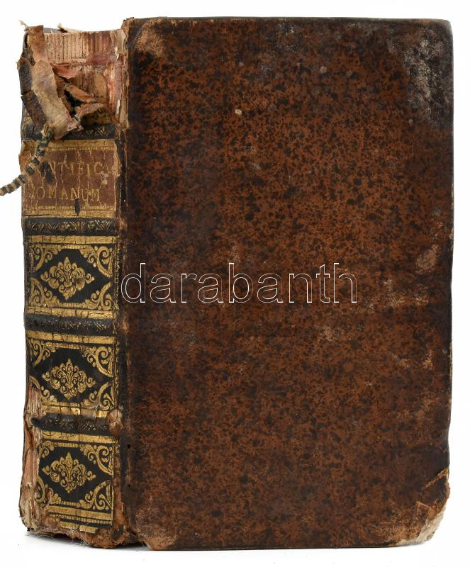 Description: Pontificale Romanum Clementis VIII. primum nunc denuo Urbani VIII, Auctoritate recognitum Antverpiae 1707., Ex Typographia Plantiniana, 16 + 542 + 2 p. Korabeli, sérült egészbőr kötésben