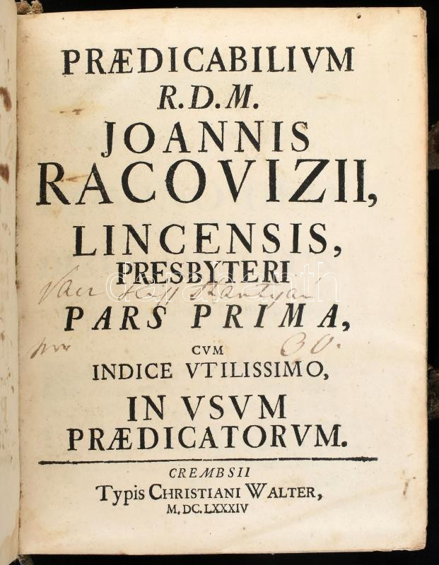 https://www.darabanth.com/en/436-Online-auction/436.0/Books/Books-Religion~1000019/Racovizius-Johannes-Praedicabilium-R-D-M-Joannis-Racovizii-lincensis-presbyteri-2-3-Cremsi~II2832773