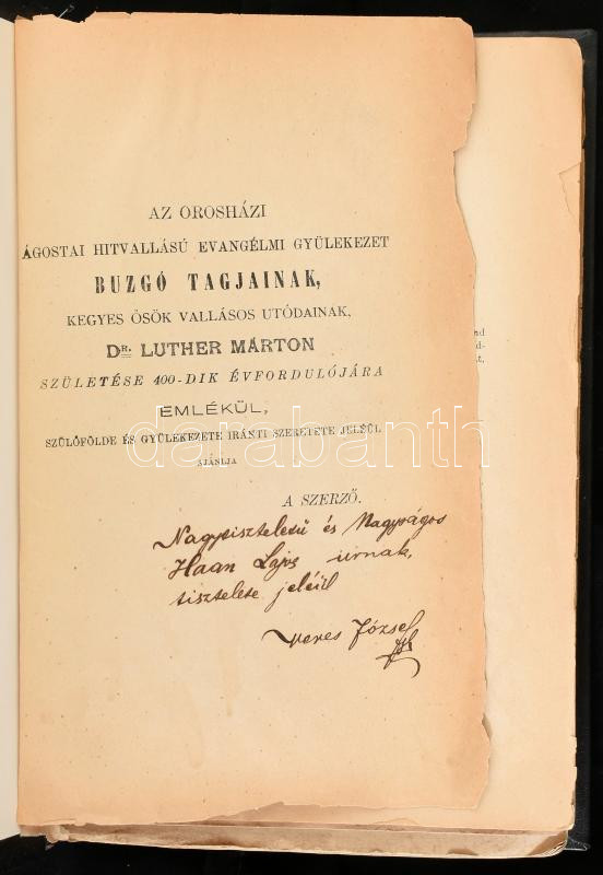 Vallási kolligátum dedikált példányokkal: Veres József: Hirdesd az igét. DEDIKÁLT;Gajdács Pál: Egyházi beszéd. Bp., 1877.; 1884 Bachát Dánielné emléke.; Thébusz János: Egyházi beszéd melyet a Magyarhoni E.E.E. gyámintézet közgyűlése alkalmával Selmecbányán mondott -- Miskolcz, 1882., Jan Th. Mokovcsák: Nábozné kázáni...1882.; 1876 Gyászünnepély melyet a magyahorni ágost. hitv. evang. egyház egyetem néh tótprónai és blatniczai báró Prónay Gábor volt egyetemes egyházi és iskolai felügyelője tiszteletére 1875 évi rendes közgyűlése alkalmával tartott; Sztehlo András: Húsvétshátfői beszéd 1859. Dedikált. + még 10 hasonló magyar és szlovák nyelvű kiadvány egybe kötve modern vászonkötésben