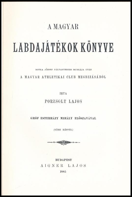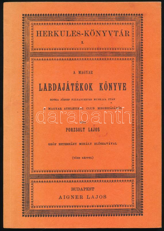 Porzsolt Lajos: A magyar labdajátékok könyve. Eszterházy Mihály elősza... https://www.darabanth.com/en/436-Online-auction/436.0/Books/Books-Sports-Chess-Alpinism~1000006/Porzsolt-Lajos-A-magyar-labdajatekok-konyve-Eszterhazy-Mihaly-eloszavaval-Jatektortene~II2832999