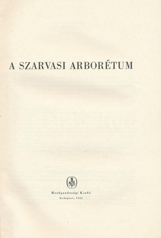 A szarvasi arborétum. Összeáll.: Baucker Alajos és Gruber Ferenc. Bp., 1962, Mezőgazdasági Kiadó. Fekete-fehér képekkel illusztrált. Kiadói papírkötés. + 5 db a szarvasi arborétumot ábrázoló képeslap