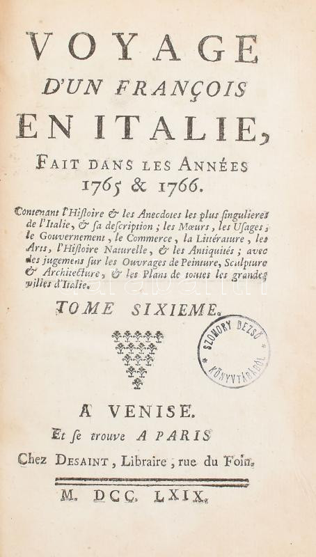 https://www.darabanth.com/en/436-Online-auction/436.0/Books/Books-Travelling-Local-History~1000005/Voyage-Dun-Francois-en-Italie-fait-dans-les-annees-17651766-Paris-1769-Desaint-Korabeli-szak~II2833793