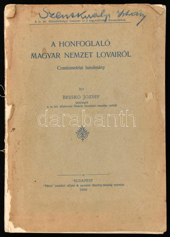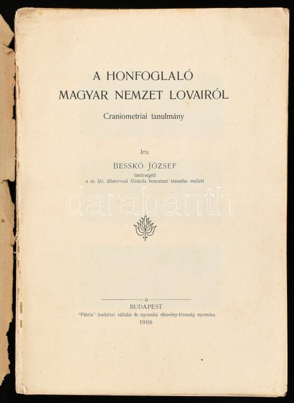 Craniometriai ta... https://www.darabanth.com/en/436-Online-auction/436.0/Books/Books-about-horses-horsing~1000015/Bessko-Jozsef-A-honfoglalo-magyar-nemzet-lovairol--Craniometriai-tanulmany-Budapest-1906-~II2837102