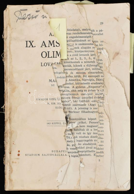 Description: Mares István Az 1928. évi IX. amsterdami olimpiász lovasmérkőzései. irta - ny. tüzérszázados. Ujfalusi vitéz Ujfalussy Gábor m. kir. honvédtábornok előszavával. 142 képpel és 27 rajzzal.