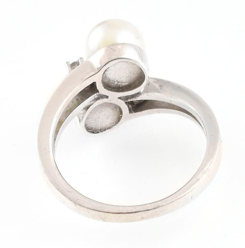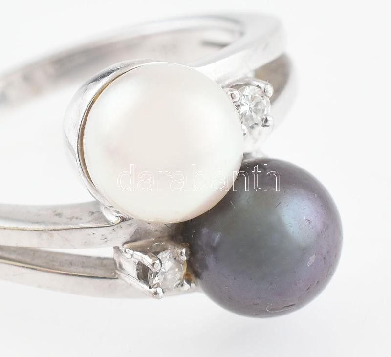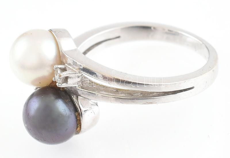 Arany (Au/14k) fehérarany gyűrű 2db kis brillel és tahiti gyönggyel ékítve, jelzett, m: 56, bruttó: 6g