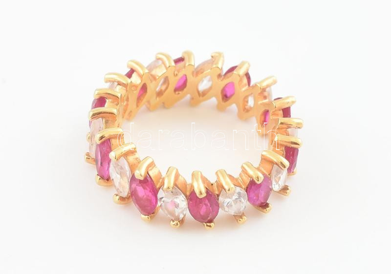 Ezüst (Ag) aranyozott, köves gyűrű, jelzett, m: 51 , Bruttó: 3,85 g