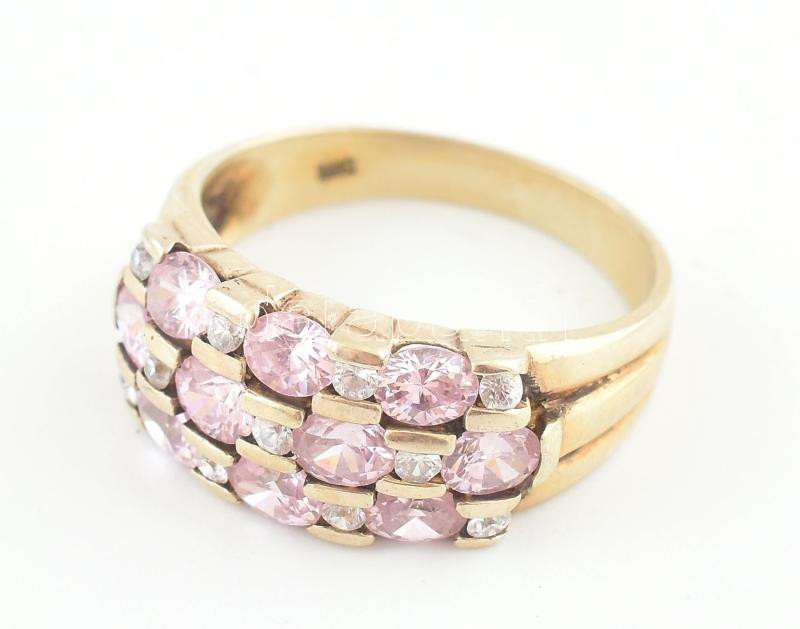 Ezüst (Ag) aranyozott, köves gyűrű, jelzett, m: 55 , Bruttó: 3,86 g
