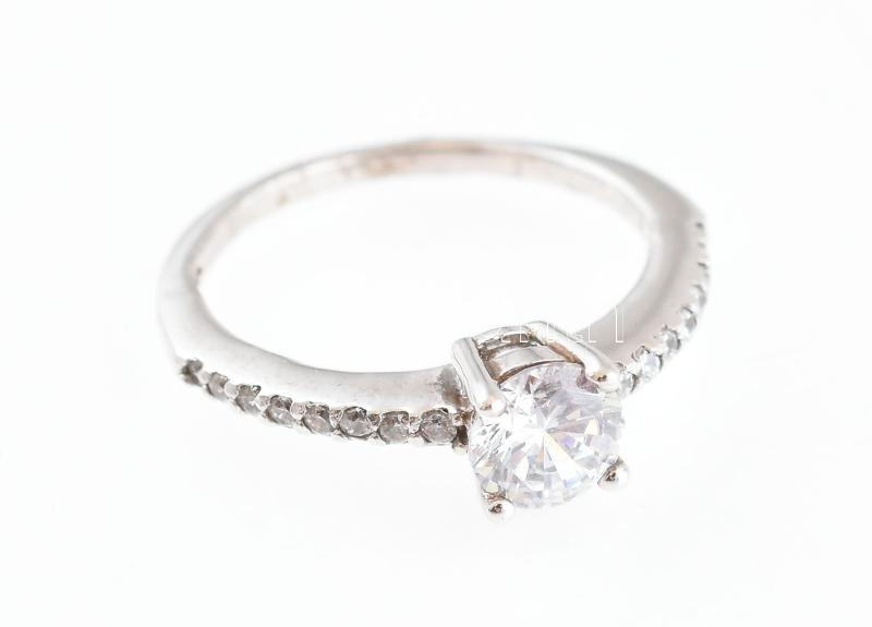 Ezüst(Ag) gyűrű kőékítéssel, jelzett, méret: 50, bruttó: 1,9 g