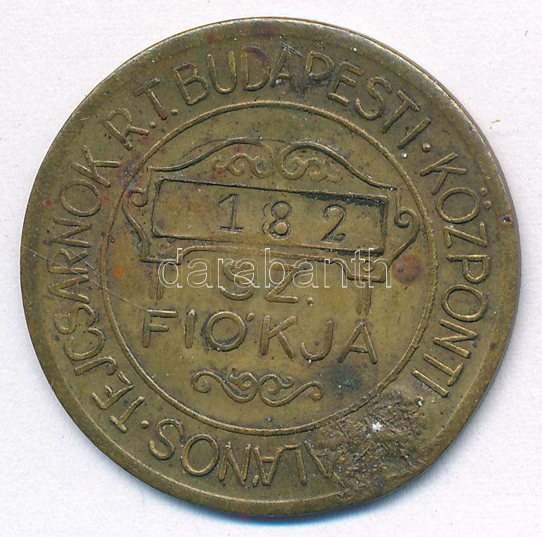 ~1930. "Üvegbetétjegy / Budapesti Központi Általános Tejcsarnok R... https://www.darabanth.com/en/436-Online-auction/436.0/Numismatics/Emergency-Coins-and-Notes~1500006/7E1930-Uvegbetetjegy-Budapesti-Kozponti-Altalanos-Tejcsarnok-RT-182-sz-fiokja-uvegbet~II2834888