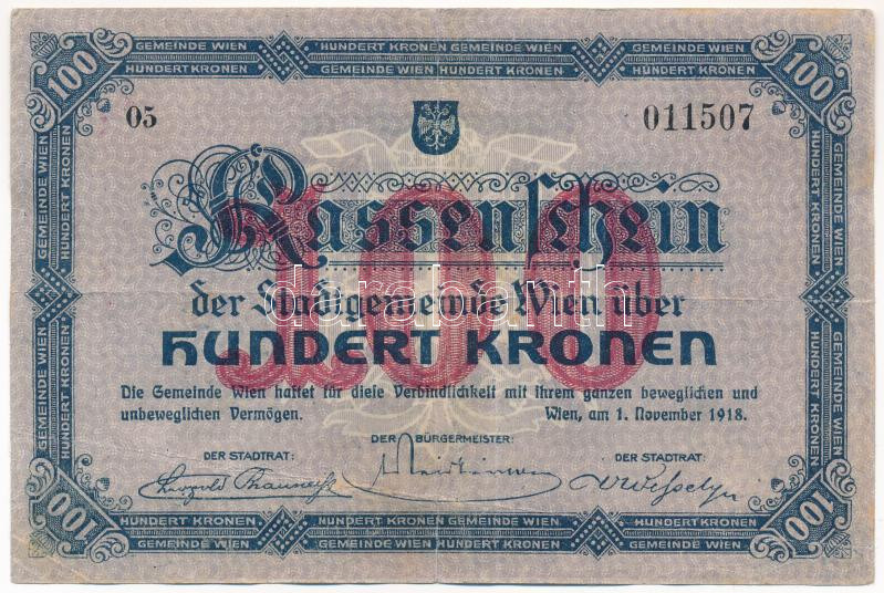 Austria / Vienna 1918. 100 Kronen "05 011507" necessity money C:F
