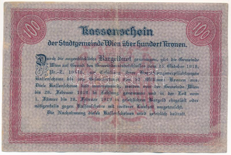 Ausztria / Bécs 1918. 100K "05 011507" szükségpénz T:III