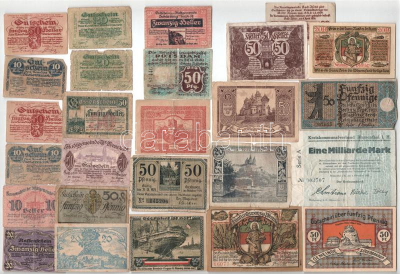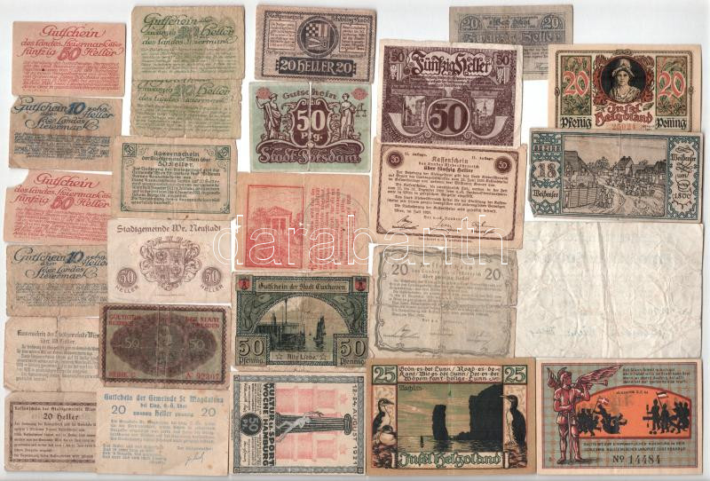 Németország, Ausztria ~1920. 26db-os papír szükségpénz-tétel, közte: Bécs, Potsdam, Bécsújhely, Bad Ischl, Hinterbrühl, Drezda, Helgoland, Süderbrarup, Berlin, Hamburg T:III-IV Germany, Austria ~1920. 26pcs necessity money / notgeld lot from Austria and Germany, within Wien, Potsdam, Wiener Neustadt, Bad Ischl, Hinterbrühl, Dresden, Helgoland, Süderbrarup, Berlin, Hamburg C:F-G
