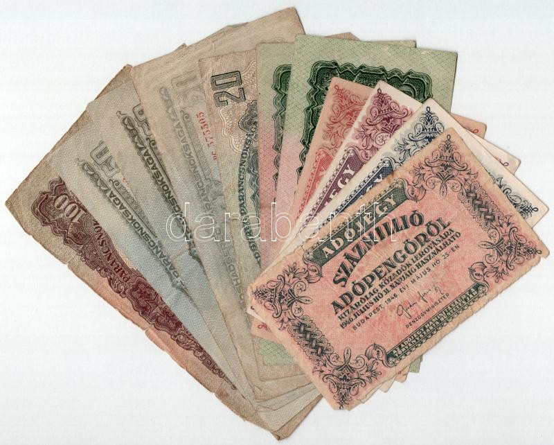 11db vegyes Vörös Hadsereg pengő, adópengő bankjegy T:III,III-