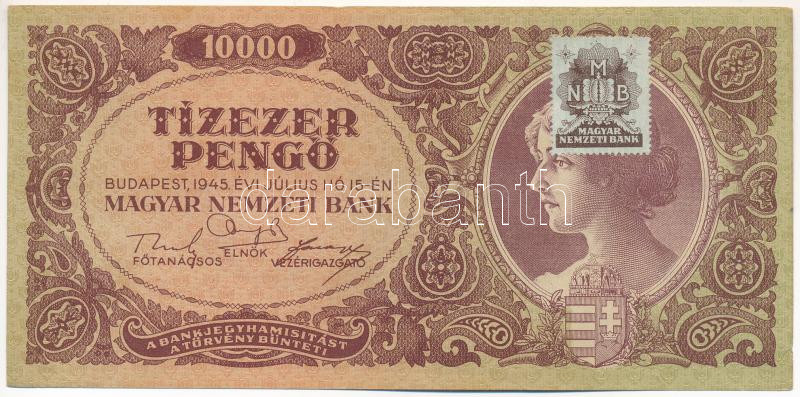 1945. 10.000P "MNB" bélyeggel T:II Adamo P23e