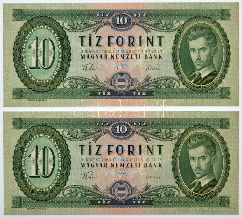 1960. 10Ft (2x) sorszámkövetők "A 522 067665 - A 522 067666" T:I,I-
