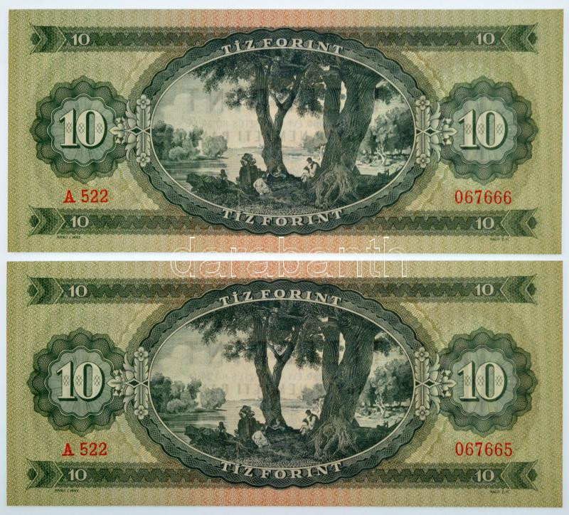 https://www.darabanth.com/en/436-Online-auction/436.0/Numismatics/Hungarian-Banknotes~1500007/1960-10Ft-2x-sorszamkovetok-A-522-067665-A-522-067666-TI-I--Adamo-F6~II2813890