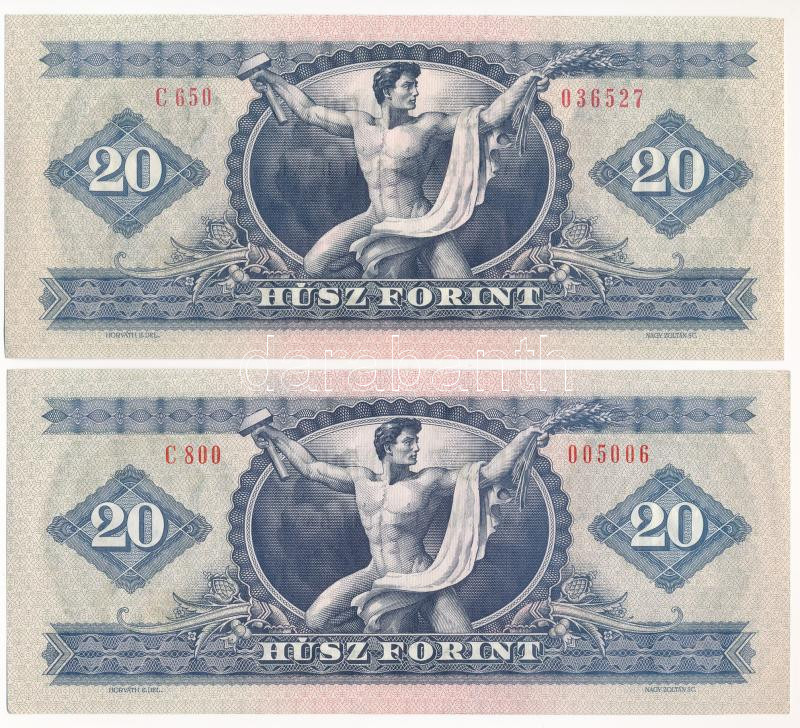1975. 20Ft (2x) az egyik papírránccal T:I,I- kis folt az egyiken