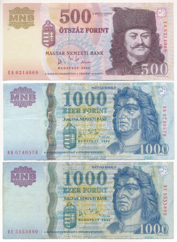 2005. 500Ft "EA" + 2006. 1000Ft (2x) "DB" és "DE" betűjellel kezdődő sorszámokkal T:I--III