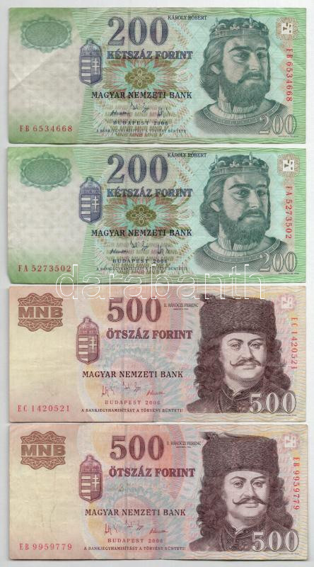 2006. 200Ft (2x), "FA", "FB" + 2006. 500Ft (2x) &q...