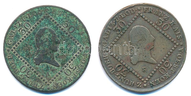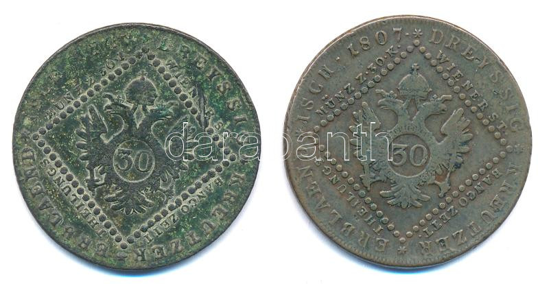 1807S 30kr Cu "I. Ferenc" + Ausztria 1807A 30kr Cu "I. Ferenc" T:2-,3
